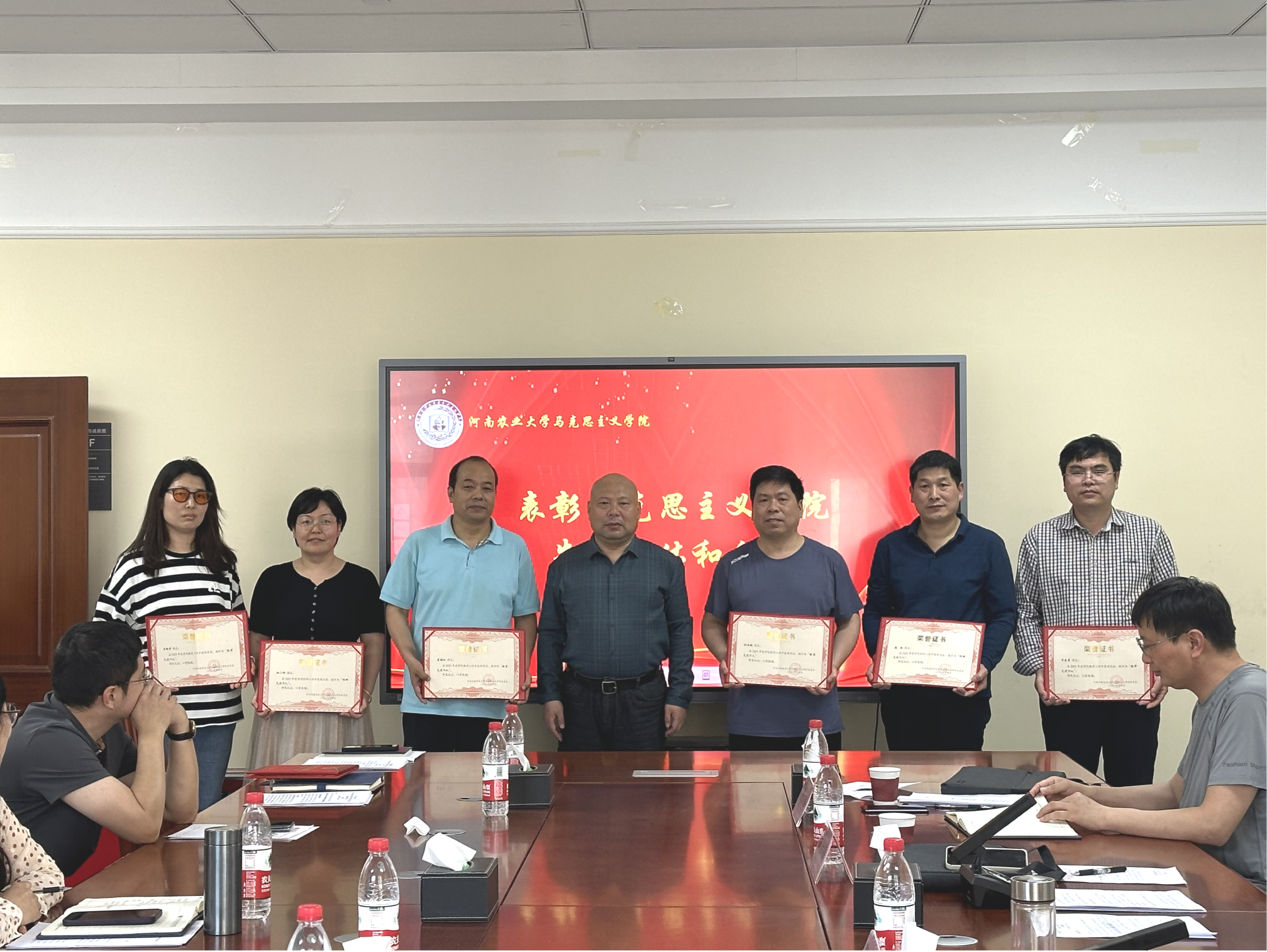 先进集体和个人并进行了表彰。先进集体“红旗党支部”思想道德与法治党支部;“教学和科研先进个人”获得者孙玉健、牛志勇、李海泳、王榆芳、杜小峥、杨筱明、鹿林;“社会服务先进个人”获得者陈娱、刘宁静、甄京博;“优秀党员”获得者彭菲、赵蕊、宋艳粉、陈家欣、杜小峥、茹茜、王海晶。