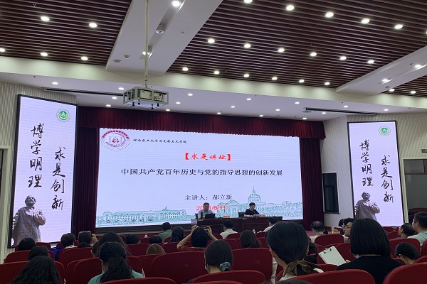 教授郝立新教授应邀作客3d里番 求是讲坛,作了题为“中国共产党百年历史与党的指导思想的创新发展”的专题报告。学院全体师生参加了报告会,院长陈娱主持报告会。