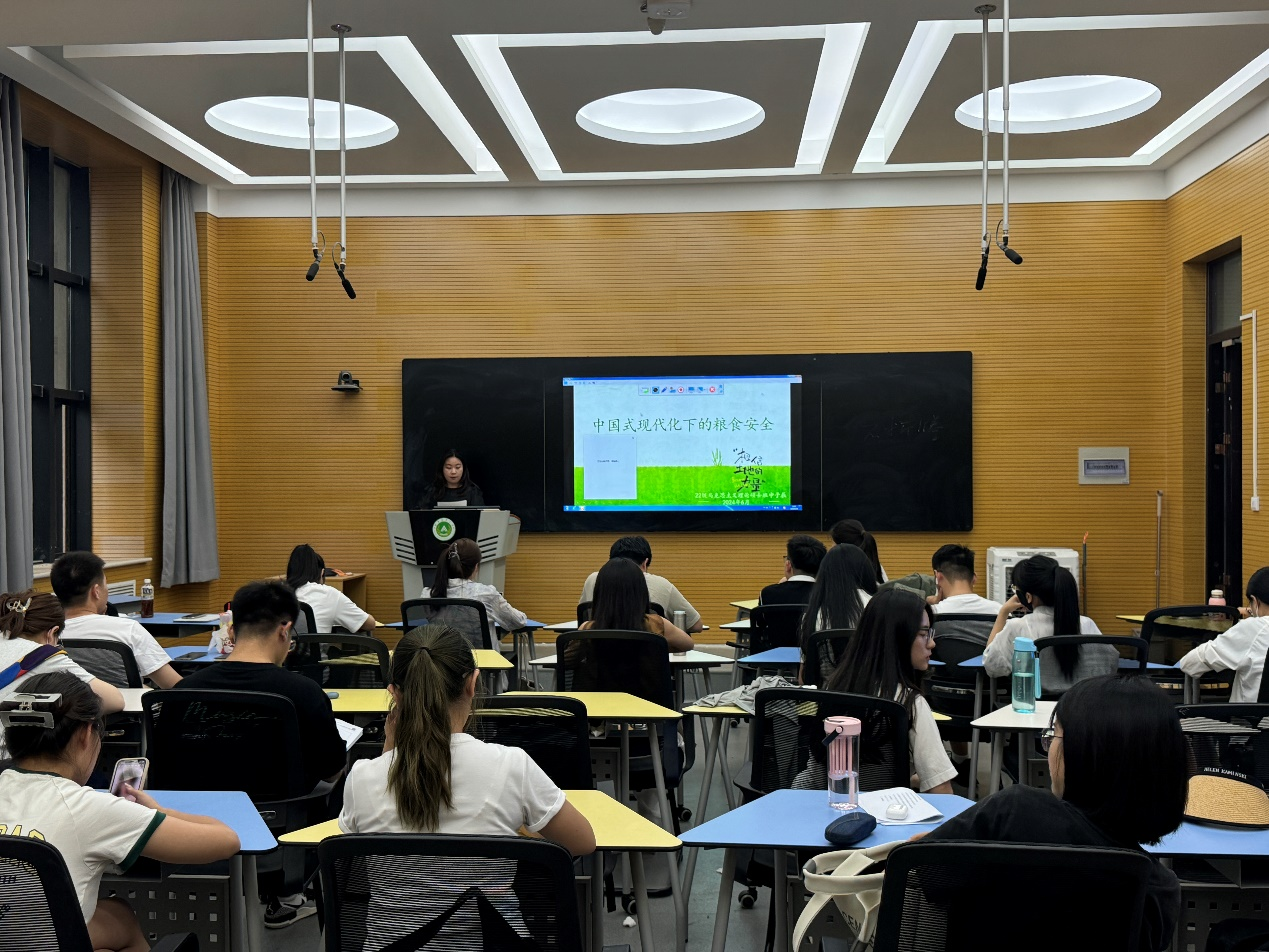 申子辰以“中国式现代化的粮食安全”为主题,从目标任务、转型挑战、实现路径三个方面展开讲解。分析了当前的目标任务是从根本上上解决全体人民吃饭问题,包括共享共建的基础支撑和开源节流“双轮驱动”的重要途径,以及资源高效利用与生态可持续的重要保障,阐述了当前面临的传统粮食生产向“大食物”生产转型的压力加剧、保粮安保产出向统筹发展与安全转型的难度加大、“三高一低”模式向绿色低碳发展转型的需求迫切等问题,强调了一要树立大食物观和大农业观,构建多元食物供给体系,夯实“以内为主”的根基;二要践行共享观和责任观,完善种粮收益保障机制,提升种粮抓粮“两个积极性”;三要落实可持续发展观和科技观,加快农食系统绿色转型,推动农业高质量发展;四要推进系统论和全局论,促进全链条节粮降损,引导全社会膳食消费新风尚;五要倡导开放观和共赢观,推动构建人类命运共同体,积极参与国际粮食合作与粮农治理。