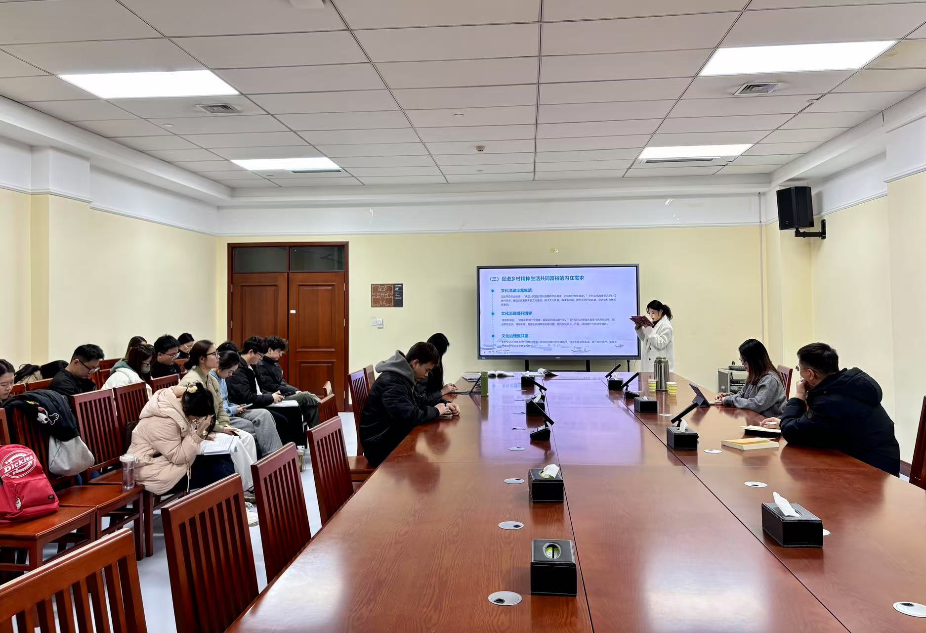 苏婷围绕“新时代推进乡村文化治理的逻辑理路及实践路径”为题进行讲解,以新时代如何推进文化治理为切入点,深入剖析了新时代乡村文化治理的现状和问题,同时结合2025年中央一号文件,就新时代乡村文化治理的一系列应对策略进行了详细阐述,强调了党的建设和村民自治的重要性。