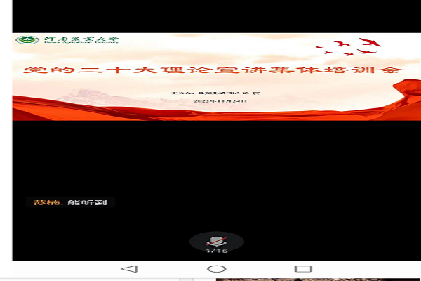 (李秋潭 刘梦迪 文,翟有为 图 )2022年11月24日,应学校党委宣传部邀请,我中心研究人员陈娱教授以腾讯会议的方式主讲了党的二十大理论宣讲集体培训会作辅导报告。培训会由学校副书记游舸主持。