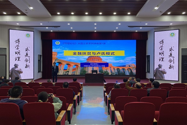 主要内容:以扶贫的方式和探索的模式为引子,通过提出问题“什么是金融”和介绍卢氏县的概况展开报告,首先第一部分介绍了金融扶贫的思路及政策依据,认为要从内部企业兼并重组、外部大力招商引资和利用证监会政策促使企业上市等方面解决卢氏财政困境,增加卢氏县财政收入。第二部分从利用世界银行无息贷款、利用国开行农发行贷款、PPP项目、利用证监会政策力推公司上市、成立百万教育基金助力教育扶贫等几个方面,详细向同学们解释了金融扶贫和扶贫模式的内涵,使同学们了解到卢氏的金融扶贫模式和实践路径。第三部分说明了卢氏模式的核心要义及推广,说明了卢氏经验的核心问题是金融服务体系、信用评价体系、产业支撑体系和风险补偿体系四个体系的建立,这四个体系解决了“钱从哪里来、钱为谁用、钱怎么用、钱飞了怎么办” 等问题。