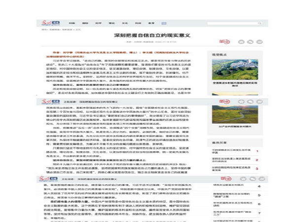 刘宁静同志撰写的文章“深刻把握自信自立的现实意义”发表于2022年11月18日的《光明日报》。